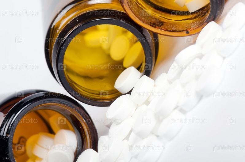Перевернутые банки с таблетками