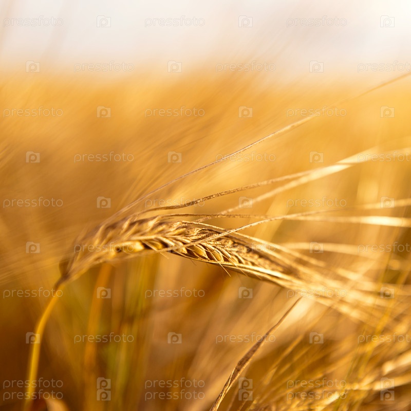 Крупным планом фото из золотой пшеницы в поле под лучами заката