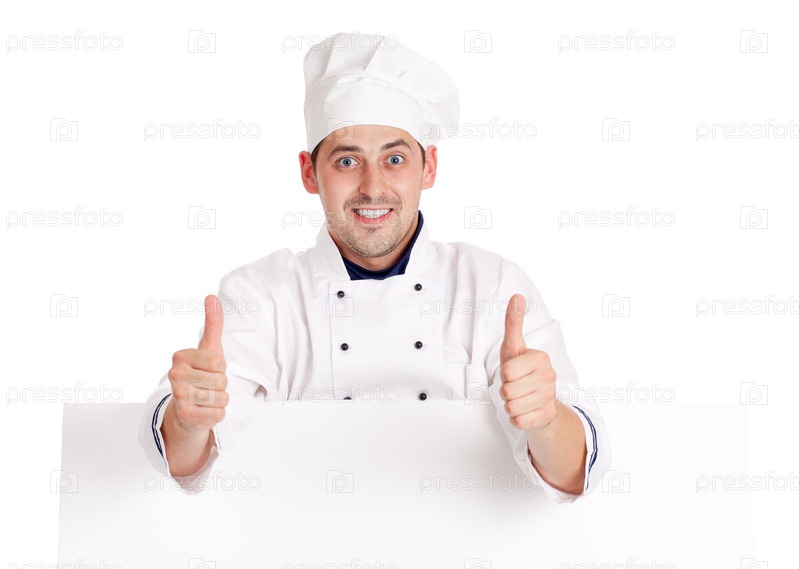 Шеф-повар показывает знак "ОК", белый фон