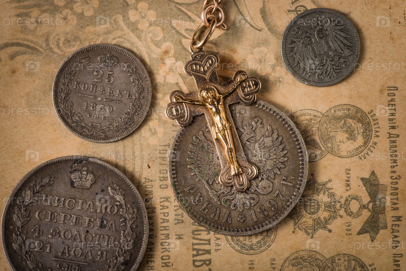Крест и монеты
