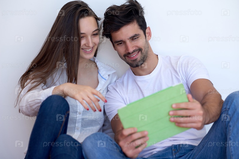 Пара в современном доме с планшетным компьютером