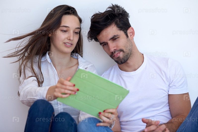 Пара в современном доме с планшетным компьютером