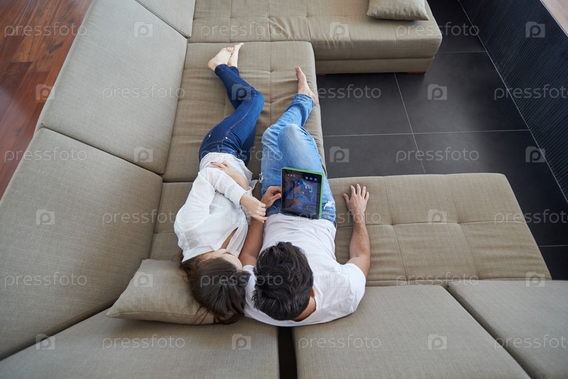 Пара в своем доме с планшетным компьютером