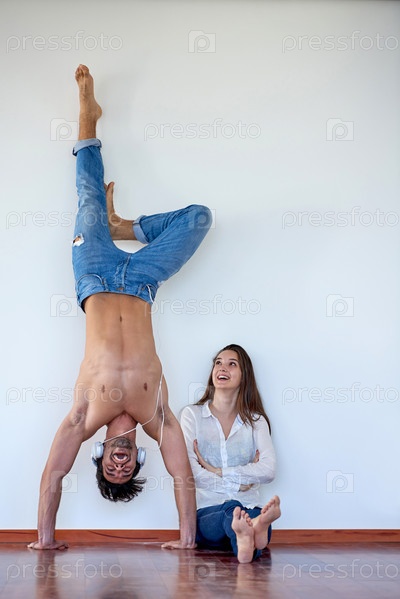 Романтическая пара расслабляется дома