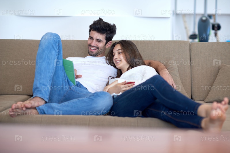 Пара в своем доме с планшетным компьютером