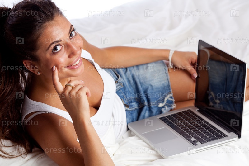 Девушка с ноутбуком в постели