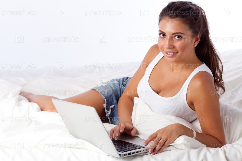Девушка с ноутбуком в постели