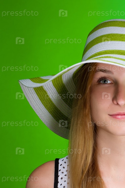 Девушка в шляпке зеленая полоса