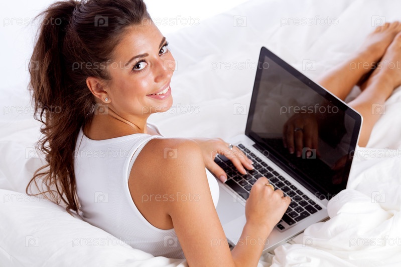 Девушка с ноутбуком в постели