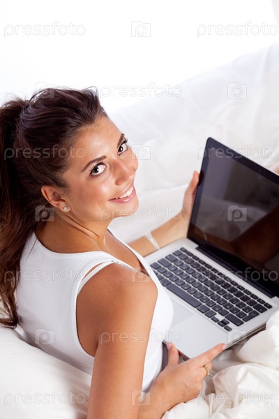 Девушка с ноутбуком в постели
