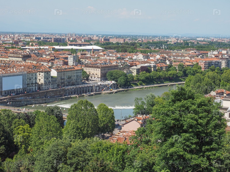 Аэрофотосъемка города Турин, Италия, вид с холма