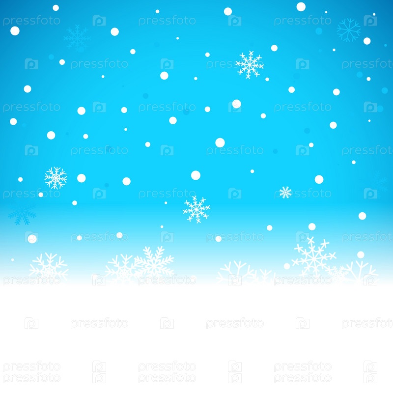 Новогодний голубой фон с хлопьями снега