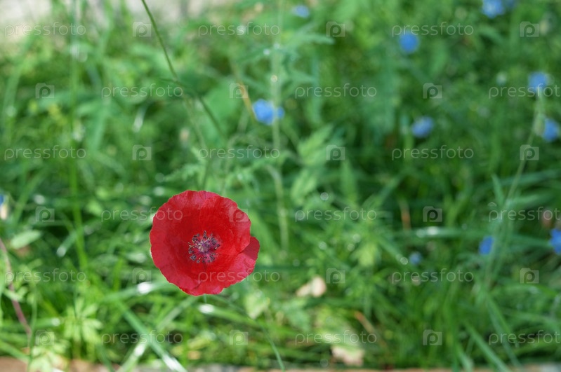Красный мак на фоне зеленой травы