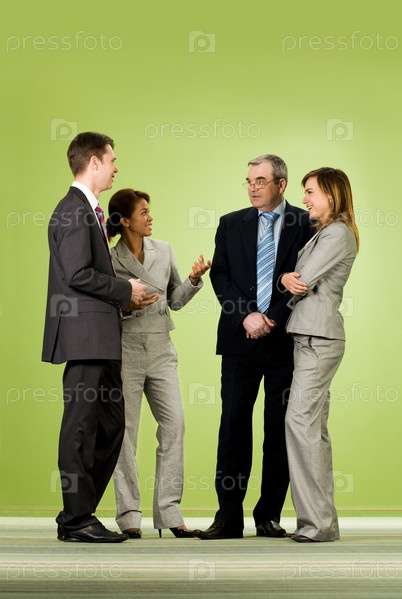 Портрет нескольких успешных сотрудников, общающихся друг с другом во время перерыва