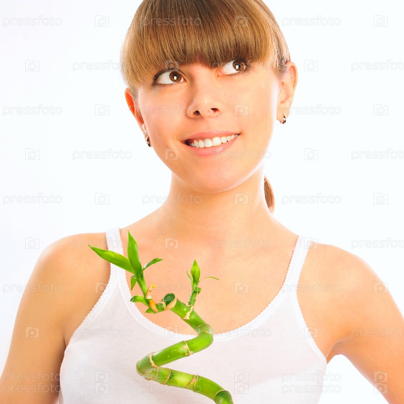 Портрет молодой девушки на белом фоне