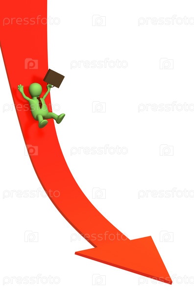 Бизнесмен, скользящий вниз по стрелке