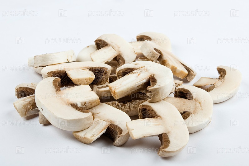 Ломтики свежих шампиньонов на белом фоне