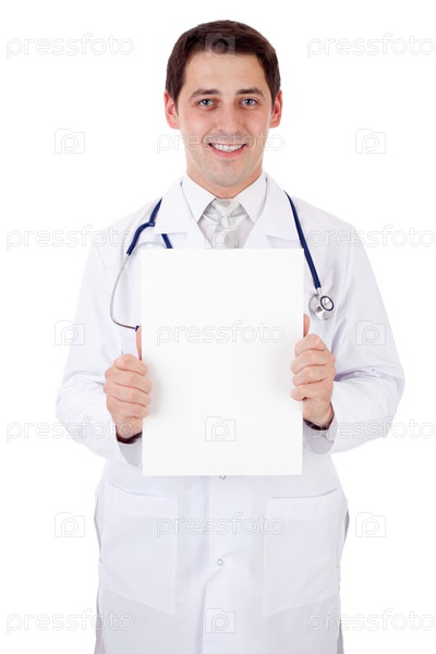 Мужчина-врач с чистым листом бумаги в руках