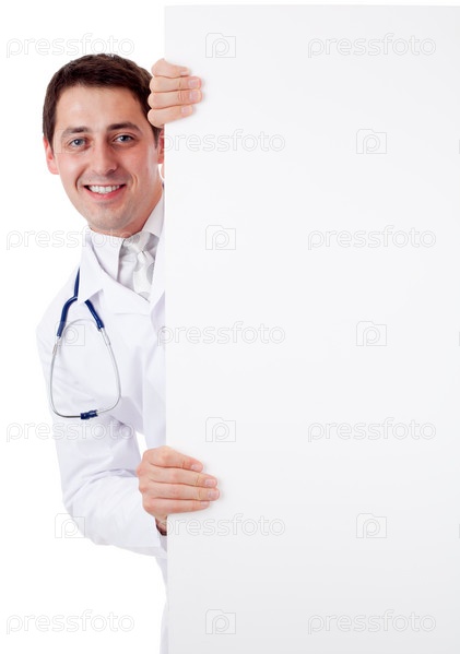 Мужчина-врач держит пустой плакат