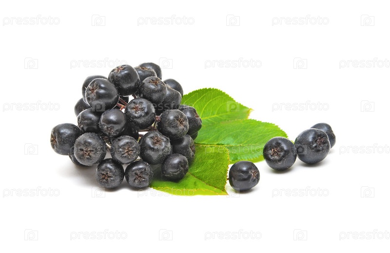 Арония с листьями на белом фоне