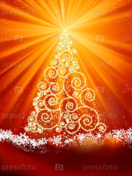 Рождественская елка на золотисто-красном фоне