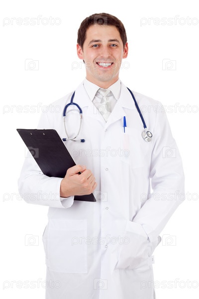 Молодой врач на белом фоне