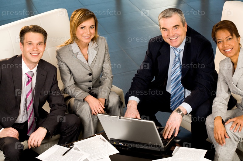 Портрет нескольких успешных сотрудников, смотрящих на камеру и улыбающихся