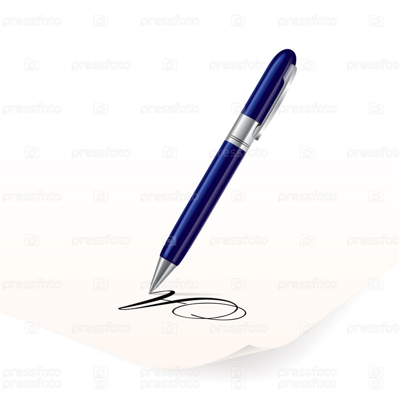 Синяя ручка, пишущая на бумаге, рисунок