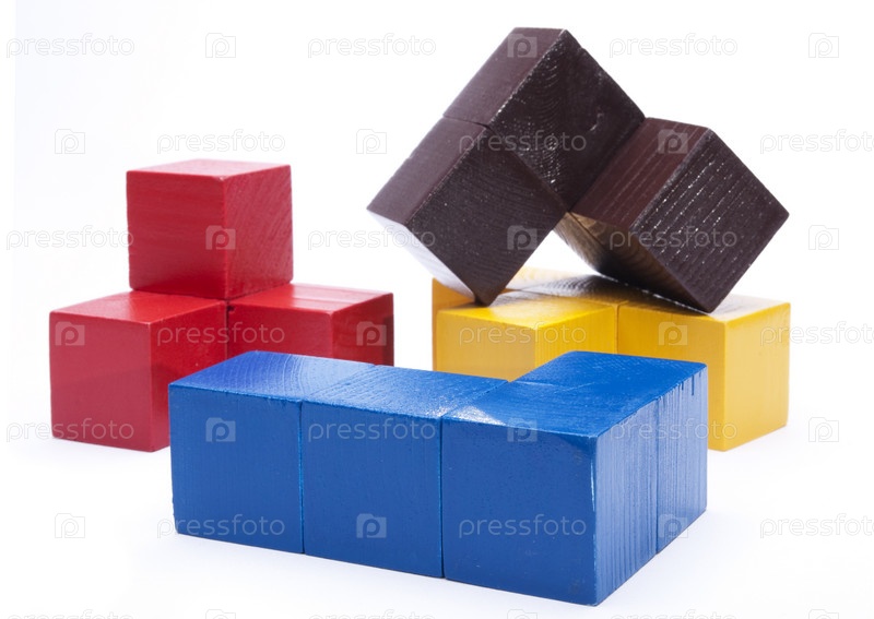 Цветные детские разноцветные кубики на белом фоне