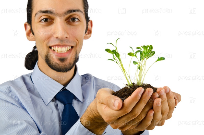 Зеленая рассады в мужских руках
