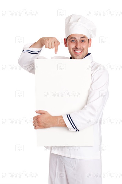 Шеф-повар с меню на белом фоне