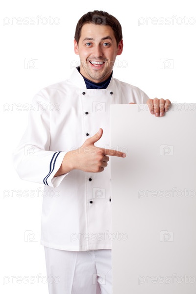 Шеф-повар с меню на белом фоне