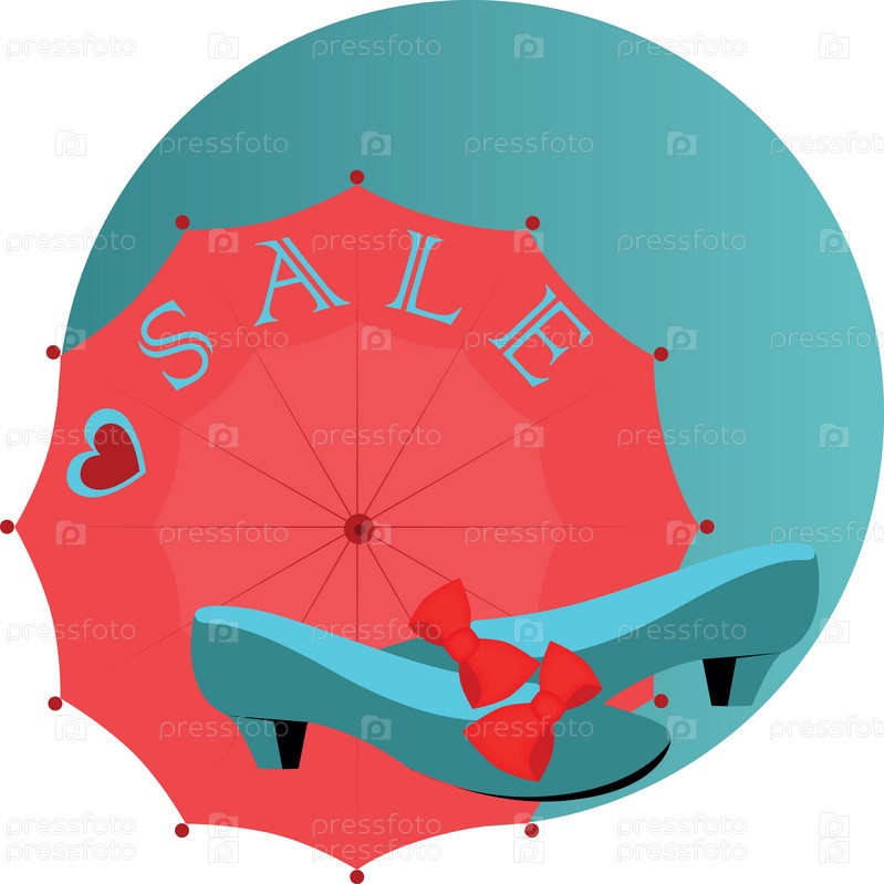 Зонтик с надписью 'Продажа' и женские туфли, иллюстрация