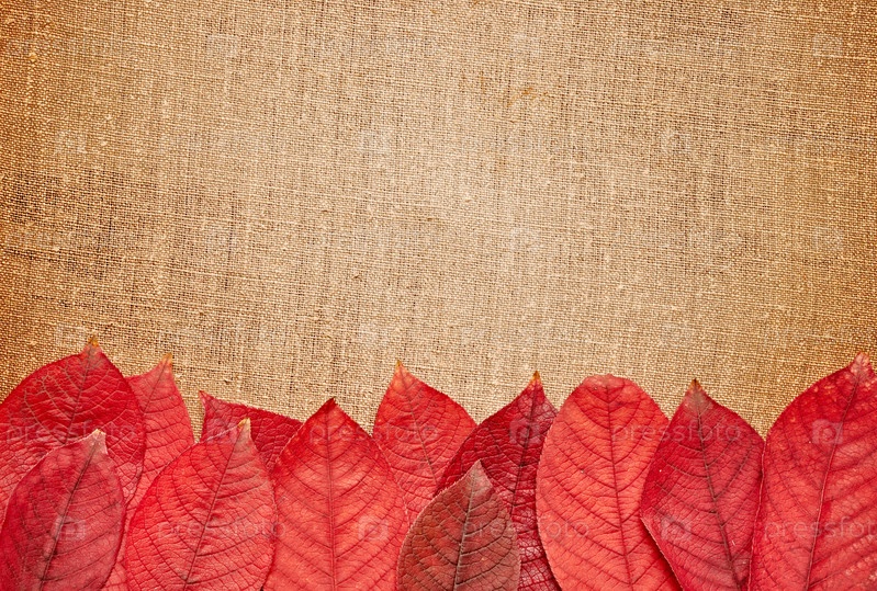 Красные листья на фоне мешковины