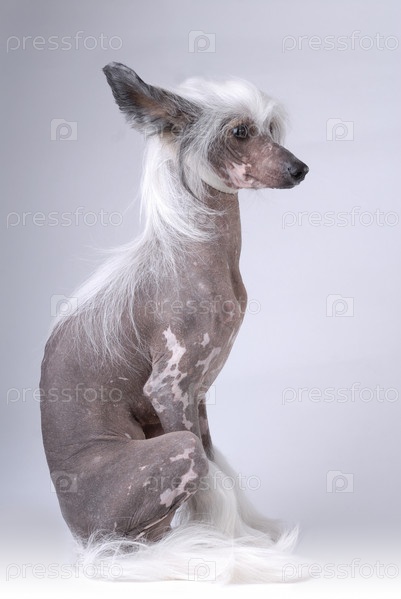 Китайская хохлатая собака на сером фоне