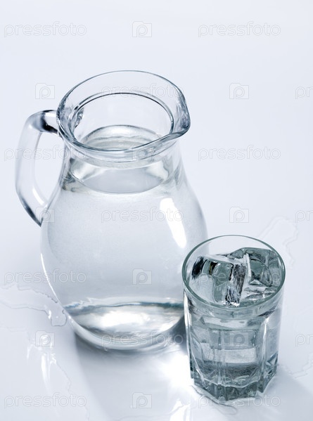 Источник свежей воды в стакане с кубиками льда