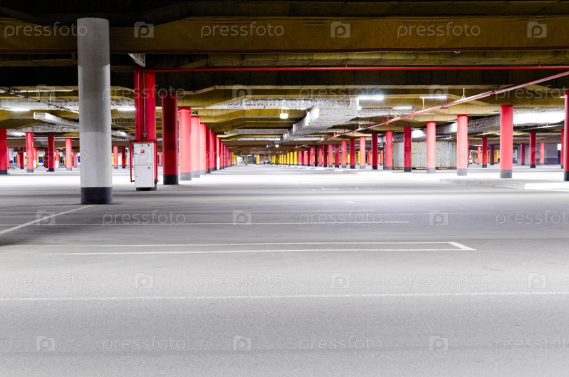 Пустой подземный гараж торгового центра
