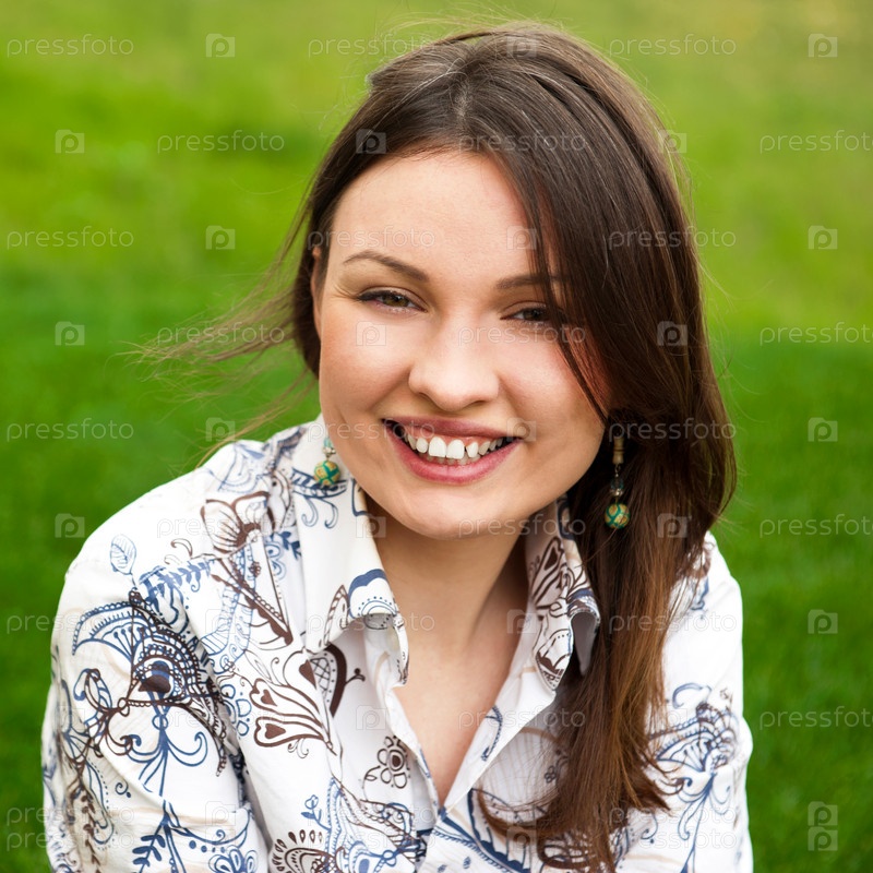 Портрет молодой женщины на зеленой лужайке