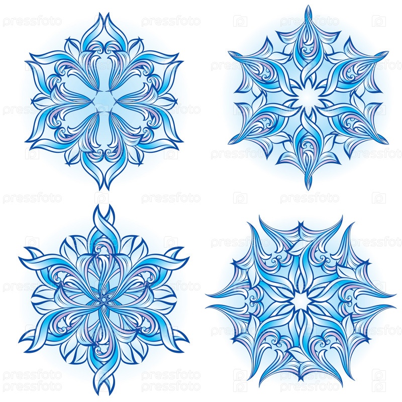 Четыре голубые снежинки на белом фоне