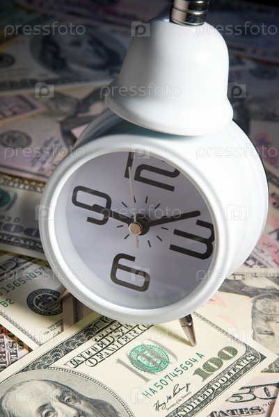 Будильник на куче долларов