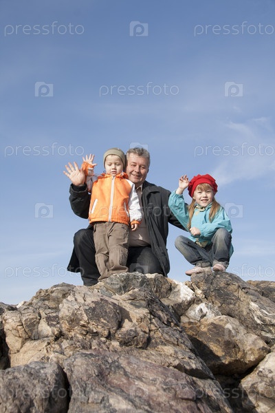 Отец с детьми на вершине горы