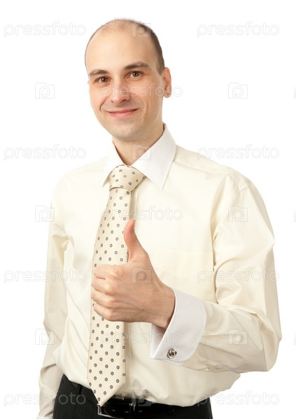 Довольный бизнесмен на белом фоне