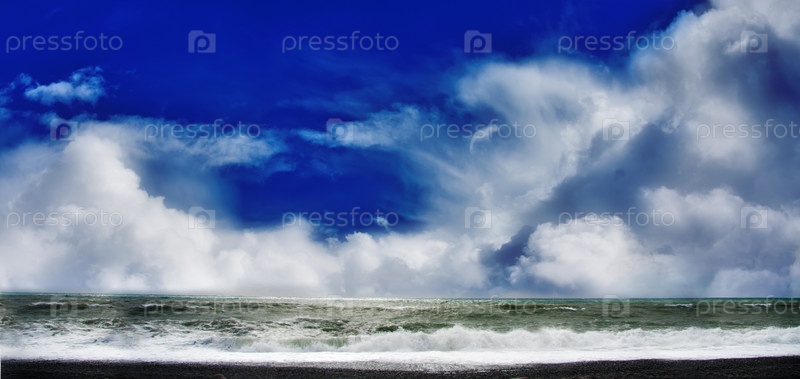 Морской прибой на фоне голубого облачного неба