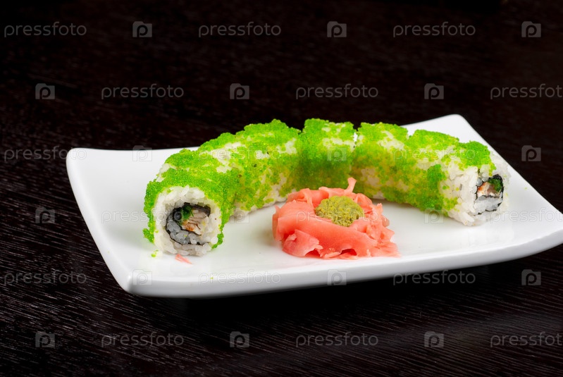 Суши из лосося, авокадо, икры тобико и сыра филадельфия