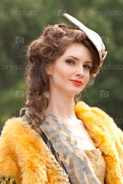 Девушка в одежде 18 века на фоне леса