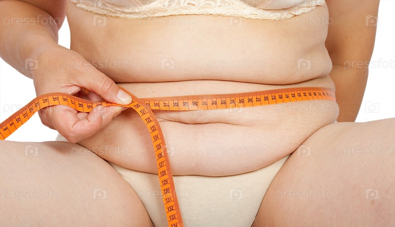 Женщина с лишним весом измеряет объем талии