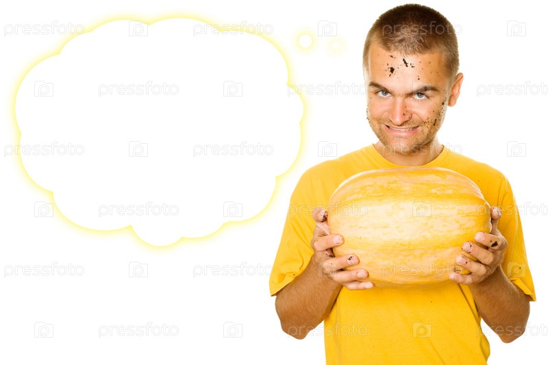 Молодой человек сжимает в руках тыкву в ожидании Хэллоуина
