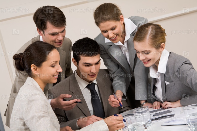 Портрет занятых людей, обсуждающих новый проект или рабочий план