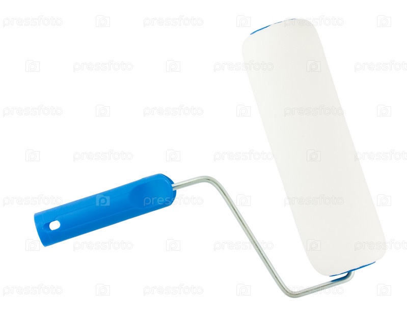 Малярный валик с голубой ручкой на белом фоне