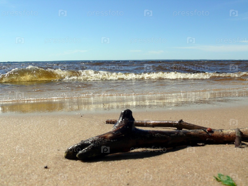 Старая ветка на песке у моря